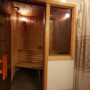 Er is een sportschool met een breed scala aan sportenfaciliteiten.